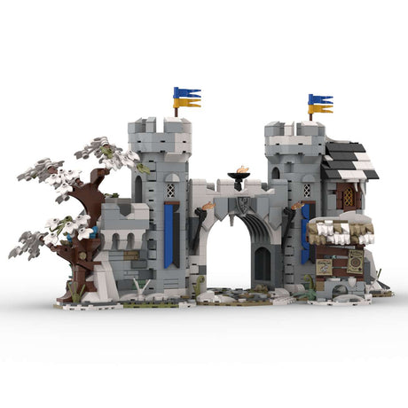 Sir Perceval built a castle with about 113,000 parts, standing on 28 32x32 baseplates. The castle was designed to be completely modular. It consists of 28 baseplate modules (A1 - G4) and 23 building modules (H01-H23). Each building is built separately and all floors are modularly removable and also have an interior.