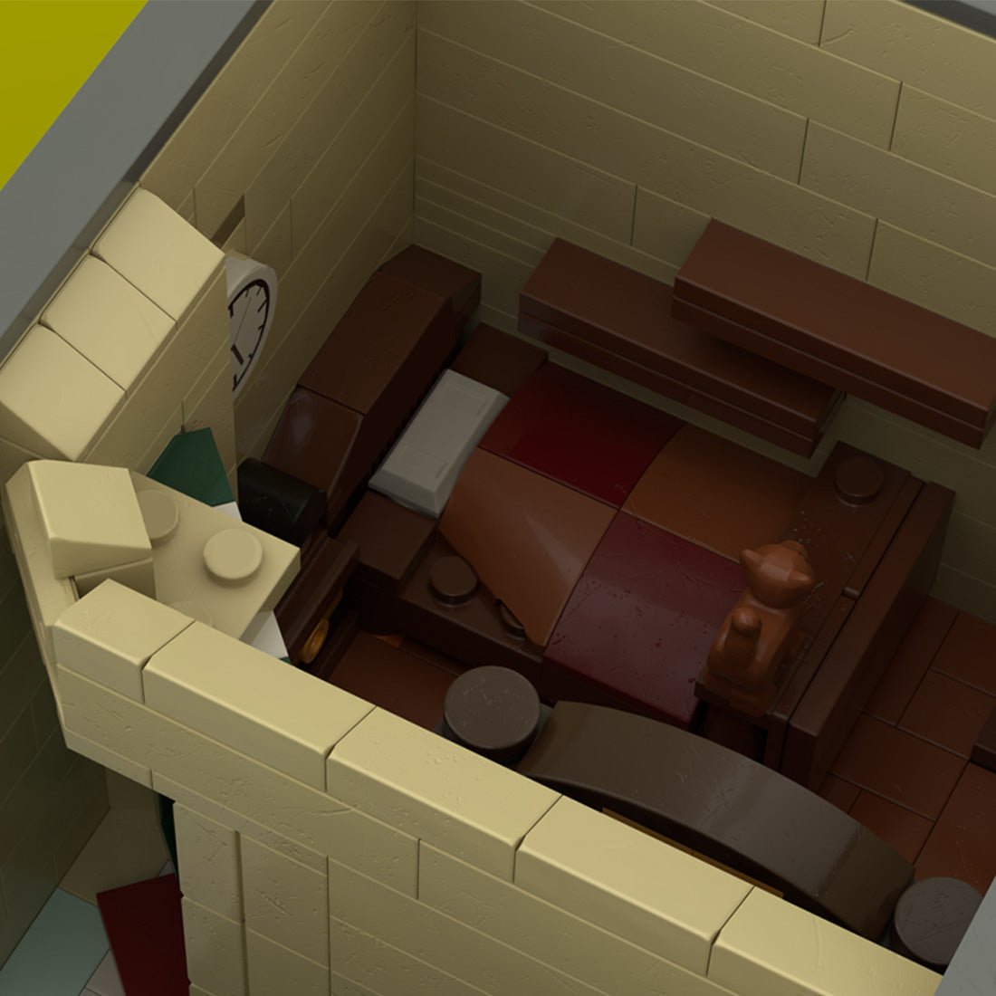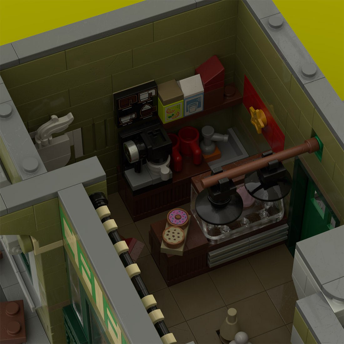 Designed and authorized by hanoibrick, this street-view MOC building model captures the charm of Hanoi's Old Quarter, blending French architectural elegance with local Vietnamese details. The two-story corner structure features arched windows, decorative cornices, layered balcony railings, and a ground-floor café with signage, awning, and street accessories for a lively streetscape. The second floor showcases green louvered shutters and a small balcony, reflecting authentic Southeast Asian urban character. Its vintage-toned color palette makes it perfect for city-themed MOC displays and street scene layouts.