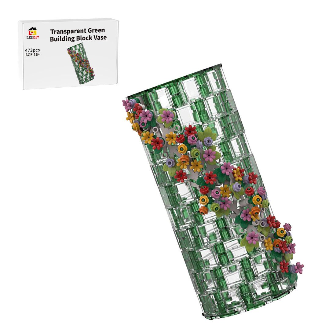 Specialized for Flower Bouquet 10280 Kit and other Flower Bouquet. Adopt transparent object to approach the effect of transparent vase. With rainbow outlook and various flower and grass dotted, the high-quality vase is beautiful and more stable.