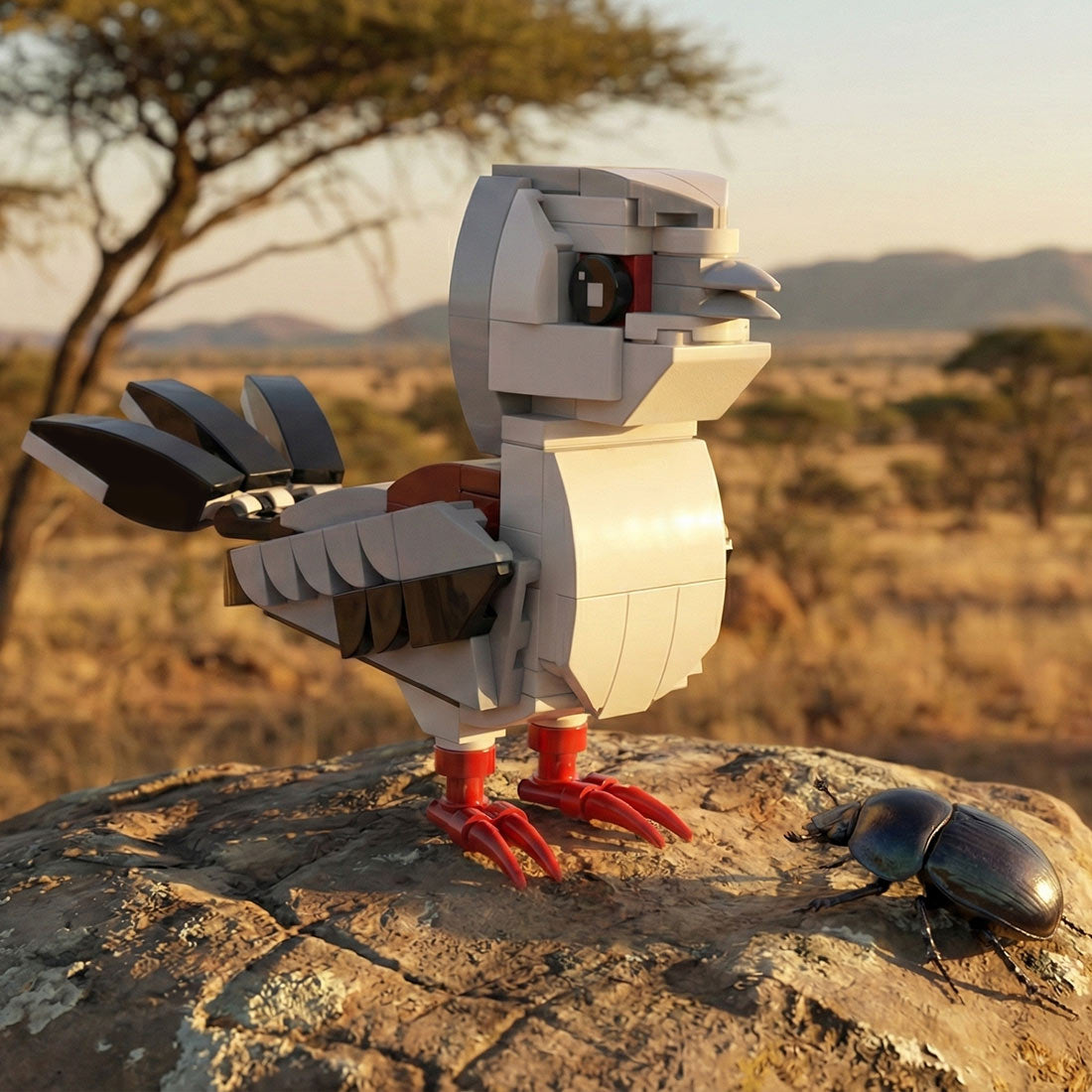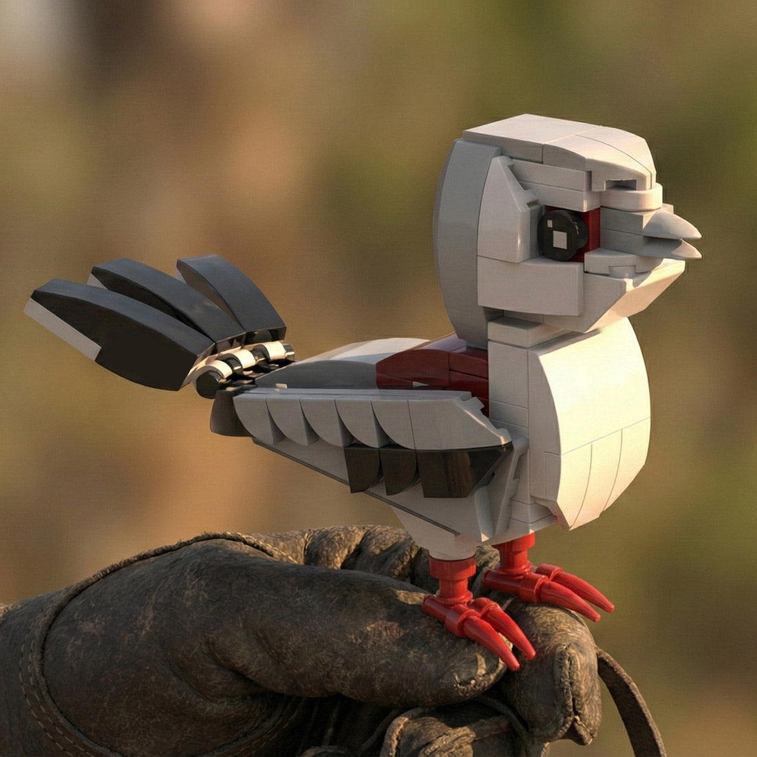 Designed and authorized by DiegoFontana, this falcon MOC model is inspired by a small African savanna species, recreating its light gray and white plumage, red-and-black tail, and striking red talons with layered brick details. Built from 136 precision-fit pieces and displayed on a natural branch base, it offers strong visual realism, smooth assembly via QR instructions, and high collectible value for builders aged 16+.