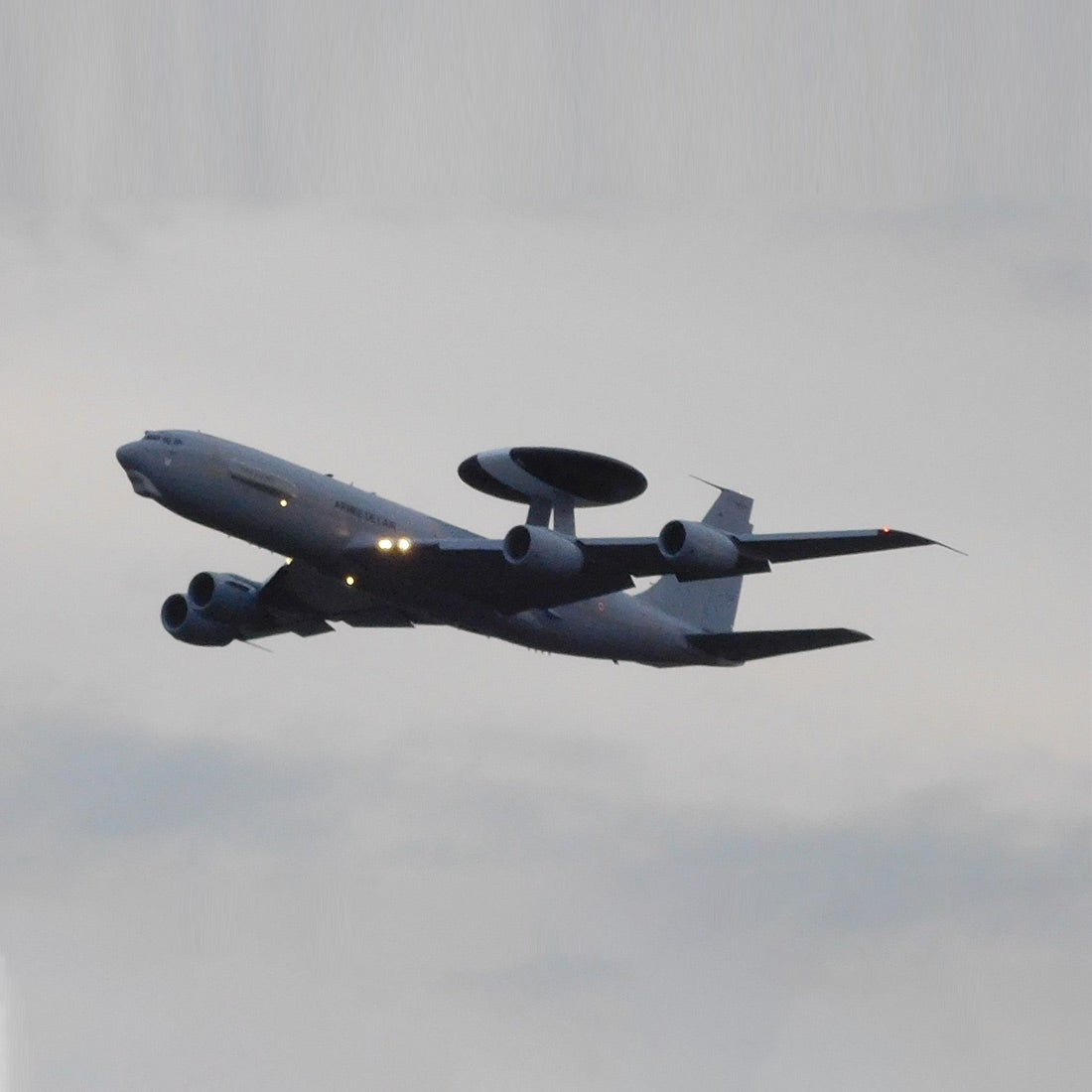 Boeing E-3 Sentry AWACS is an all-weather, long-range airborne warning and control aircraft developed by Boeing for the U.S. 's AWACS program. It features look-down capability and the ability to monitor both manned and unmanned aircraft over various terrains.