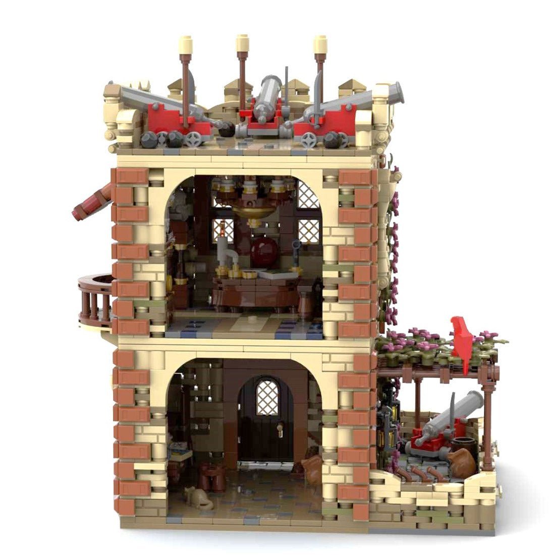 - 🏡Product description: designed and authorized by the author Klarinik, the product according to the LEGO Pirates series - Sabre Island remake. Once brilliant Sabre Island in the new design of the renewed glory, the first floor of the small courtyard has a simulation of the shed, flowering vines climbed half of the wall, parrots are playing on top of the trellis, the golden facade and brown bricks more appear to be an island with a story, the third floor of the several cannons at any time on standby, ready to annihilate any incoming enemy.