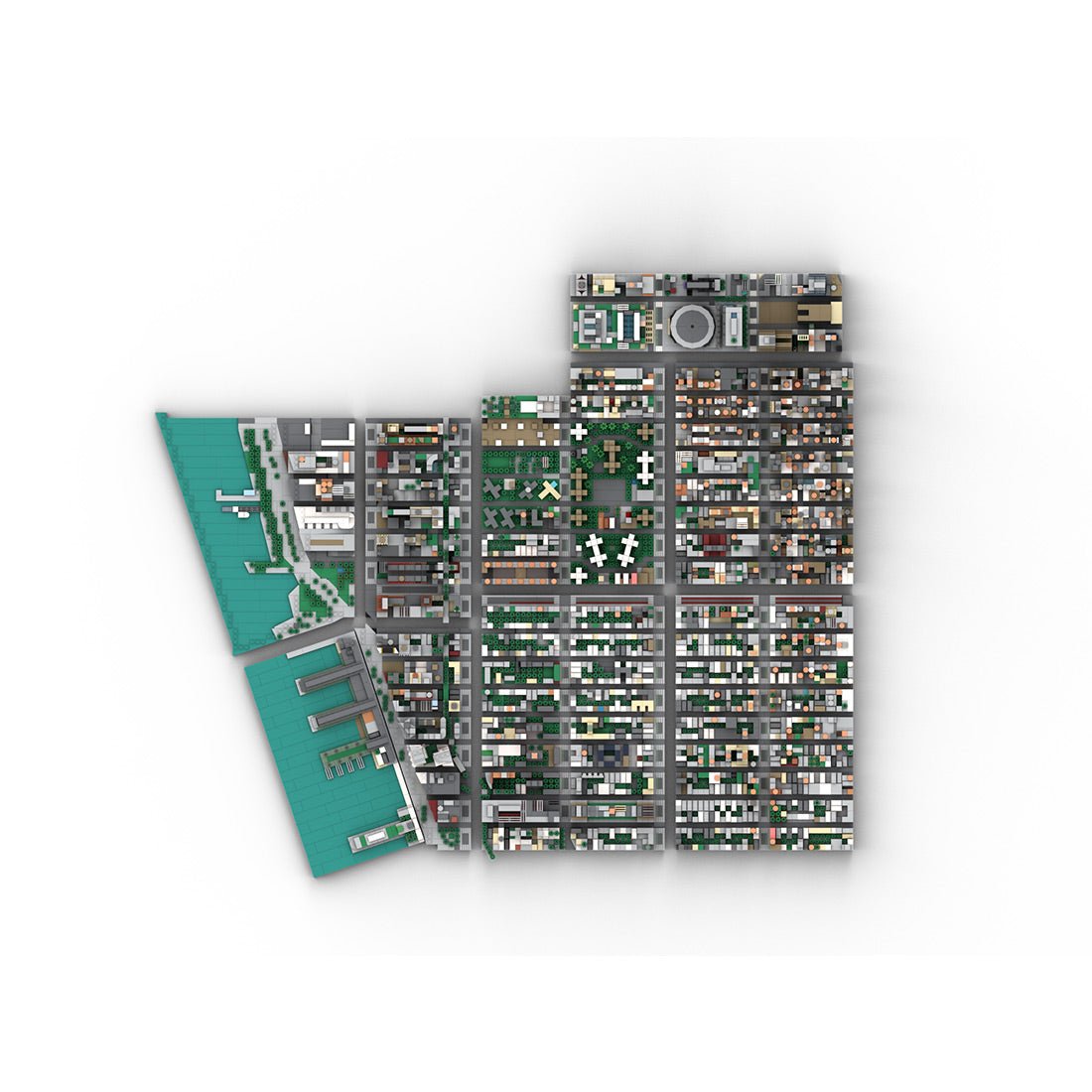 Designed and authorized by Taters, this Midtown Manhattan building blocks set is part of an ambitious city project composed of 38 sections and a total of 93,123 pieces when fully completed. Built at a 1:2000 scale, the model faithfully represents Lower Manhattan, New York City, allowing builders to purchase and assemble individual modules based on personal preferences and display needs.