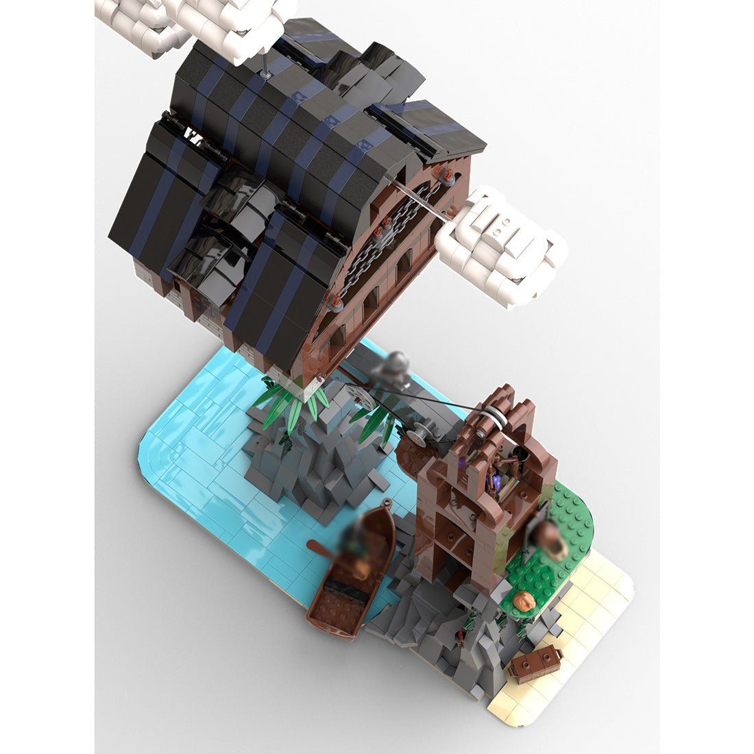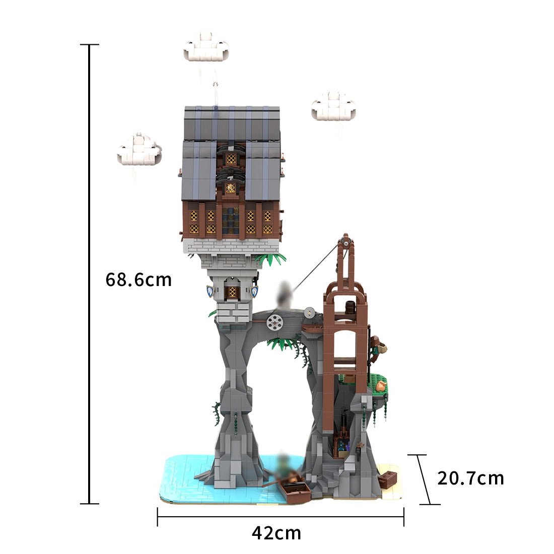 The structure can be separated into two sections and removed from the cliff, enhancing both playability and display flexibility. The cliff base is reinforced with integrated mechanical components to ensure excellent structural stability, while the overall design balances interactive features with high collectible value for fantasy and medieval-style builders.