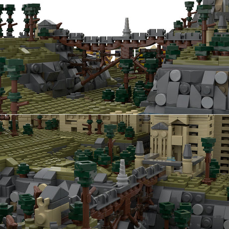 Sir Perceval a construit un château composé d'environ 113 000 pièces, reposant sur 28 plaques de base de 32x32. Entièrement modulaire, il se compose de 28 modules de base (A1 à G4) et de 23 modules de construction (H01 à H23). Chaque bâtiment est construit séparément et tous les étages sont amovibles et modulaires, et possèdent également un intérieur.