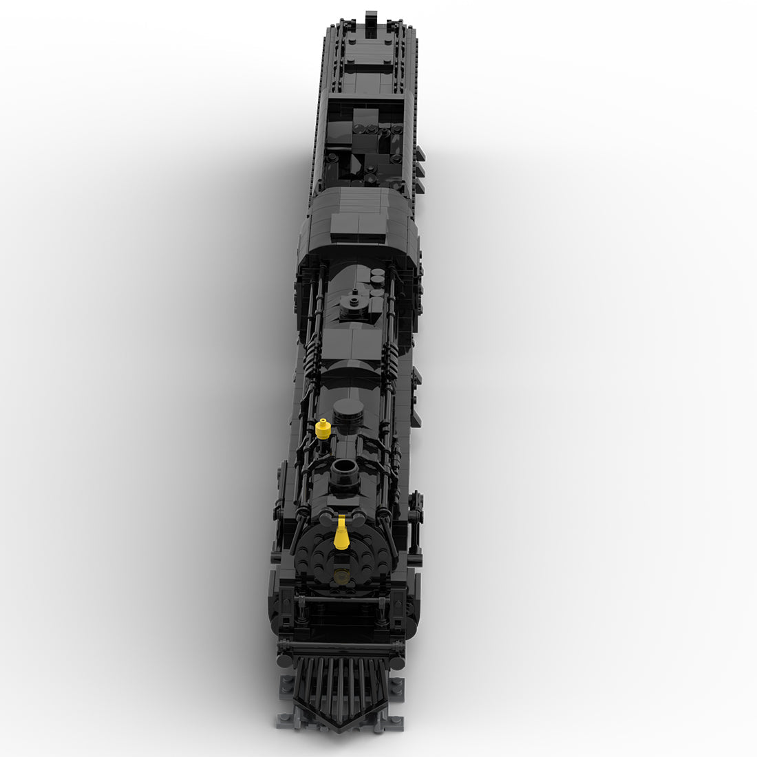 Highly detailed mechanical elements bring the model to life, including realistic connecting rods, driving wheels, boiler, and chimney, all constructed with intricate brick techniques to reflect the power and character of a traditional steam engine locomotive. The refined detailing delivers an authentic texture that appeals to both train enthusiasts and movie fans.